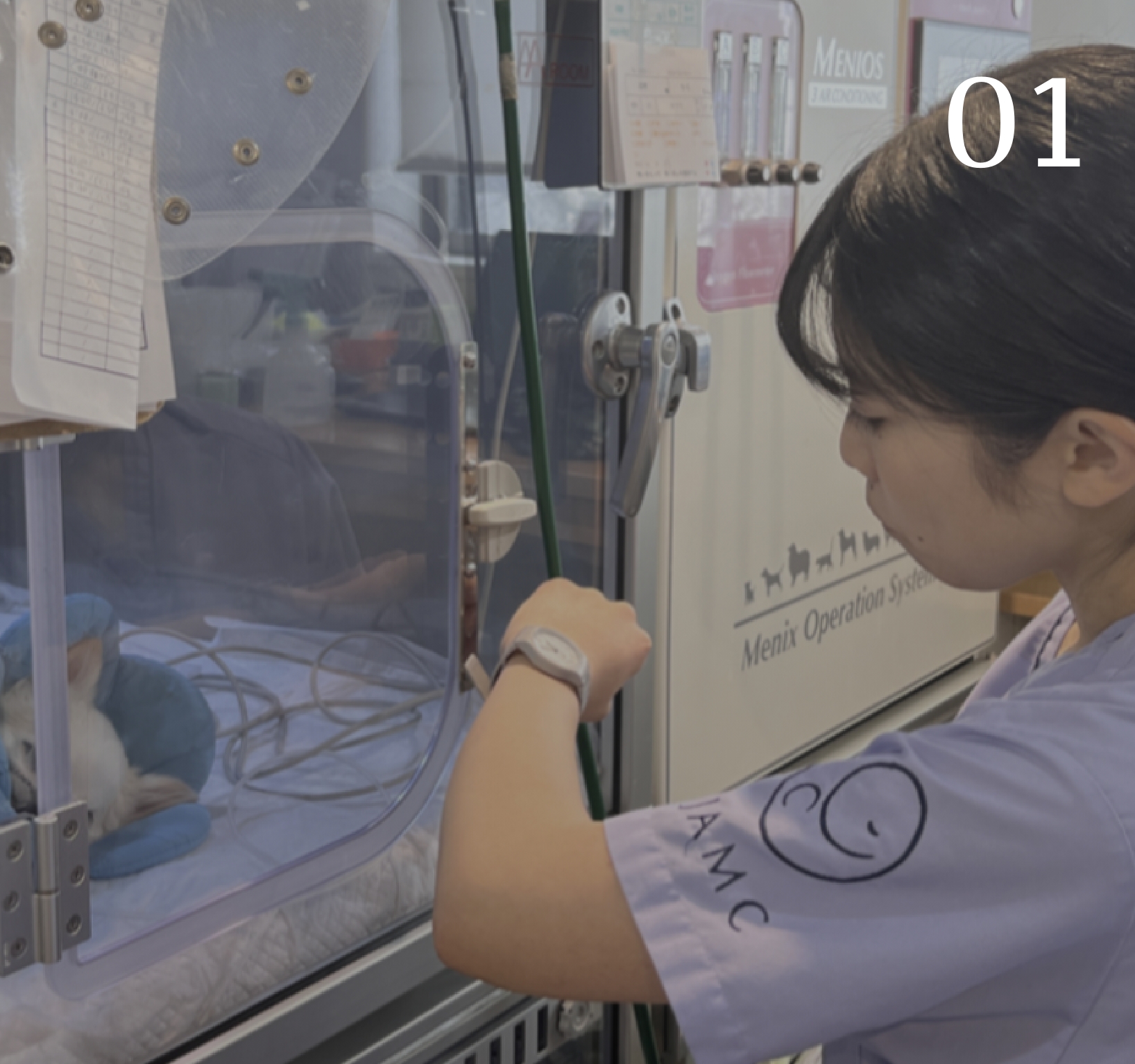 24時間365日救急対応。獣医師・動物看護師が24時間待機・ケアします。
