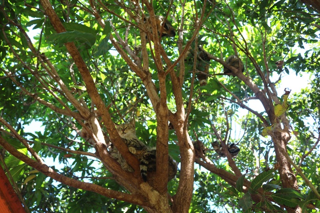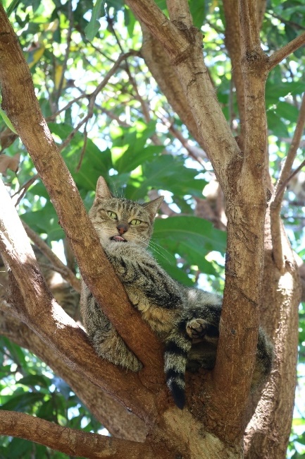 ここはハワイにあるラナイ島キャットサンクチュアリという場所 非営利団体により運営されていて、ラナイ島を訪れる猫好きさんや鳥好きさんたちの支援で成り立っています。 「猫の楽園」とも呼ばれる環境で約800匹の猫が自由気ままに過ごしています。 このキャットサンクチュアリができたきっかけというのは、もともとハワイにいた「ハワイシロハラミズナギドリ」という鳥を守るため、天敵である野良猫を保護することから始まりました。 かつては鳥のために猫が駆除されていたという例もあり、猫も一緒に守ろうと活動が開始されました。 ただ保護されているだけでなく獣医師や動物看護師の管理のもと、予防はもちろん必要な手術や日常のお手入れなど全て行なわれています。 自然な環境で自由気ままに暮らす猫たちは、野生的な本能と穏やかな日常が融合した、非常に魅力的な生活を送っています。 木々の間を自由に歩き回り、くつろぐ猫たちは、まさに「ありのまま」の姿で生活しています。 彼らは自然の中で本来の本能を発揮しながらも、適切な保護を受けています。 このような環境は、猫が安心感を持ちながら自由に生きるために不可欠です。 木の上でリラックスしている猫たちは、日々の生活に満足し、ストレスのない暮らしを送っていることを物語っています。 1. 広々とした自由なスペース 木々や草原、砂地など、猫が探検したり隠れたりするのに適した自然環境があります。 高い木に登ったり、茂みの中で身を潜めたりしながら、狩猟本能を刺激されます。 2. 自分のペースで過ごす時間 自由に日向ぼっこをしたり、木陰で昼寝をしたりすることでリラックスができます。 時間に縛られず、自分のペースで活動します。 3. 狩猟本能を満たす行動 小さな虫を追いかけたり、自然の中で遊んだりすることで、生来の狩猟本能を満足させます。 自然の音や動きに敏感になり、周囲の環境と一体化ができます。 4. 社会的なつながりと孤独のバランス 他の猫とゆるやかな群れを形成しながらも、自分の領域を尊重し合い、必要に応じて他の猫たちと遊ぶ一方、独りで静かに過ごすこともできます。 5. 心身の健康 自然環境での活動が、ストレス軽減や運動不足の解消に役立ちます。 太陽の光を浴びることでビタミンDの生成を助け、健康を維持することができます。 6. 環境への調和 自然と調和した暮らしを送ることで、人工的な環境での生活よりもストレスが少ない場合があります。 猫自身が環境に適応し、その場所の一部として生きています。 1. 「猫のなる木」:珍しい光景 私が訪れた時に大きなマンゴーの気がありました。そこで目にしたのは、木の枝にたくさんの猫たちがリラックスして眠っている様子が見られました。この「猫のなる木」は、まるで絵本の世界のような光景で、見る人を魅了します。上でのんびりくつろぐ猫たちの姿は、キャットサンクチュアリならではの魅力です。自然の中でのびのびと暮らしている猫たちを見る事が出来ました。 2.人懐っこい猫たちとのふれあい このサンクチュアリでは、猫たちにはとてもフレンドリーで、訪問者が自由に猫と触れ合うことができます。猫が自分の膝の上に乗ったり、一緒に遊んだりする瞬間は、猫好きにはゲーム体験です。 人懐っこい猫が満足そうに撫でられている表情が印象的です。ここでは猫たちはとてもフレンドリーで、訪問者との触れ合いを楽しんでいます。 3.ボランティアや寄付で支えられる サンクチュアリは非営利団体で、寄付やボランティア活動によって運営されています。訪問者も寄付することで支援ができ、滞在中に施設をサポートすることで、猫たちの未来に貢献できます。 猫の譲渡は常に募集中であり、年間約1万6千人がこのラナイ島のキャットサンクチュアリを訪れているそうです。 オリジナルのTシャツやエコバッグを購入することで遠くからでも支援になります! この記事を読んでくださっている方が猫好きなら、ラナイ島キャットサンクチュアリは絶対に訪れるべきスポットです! 800匹以上の猫たちが広々とした楽園で暮らしながら、フレンドリーに迎えてくれます。 遊んだりする瞬間は、本当に心が癒されます。 さらに、この施設は猫たちを保護するだけでなく、ハワイの生態系も守るという素晴らしい活動をしているのも魅力的です。 自然と動物が共存するこの環境は、猫好きだけでなく、リラックスした時間を求める全ての人におすすめです。 木の上で過ごす猫や、愛情に応えてくれる猫たちとのふれあいは、ここでしか体験できない忘れられない思いができる事間違いなしです。 静かで自然豊かなラナイ島自体も観光地としてリラックスできるので、癒しの旅を考えている人にはぴったりです。 猫たちに囲まれたひとときを、ぜひ体験してください。